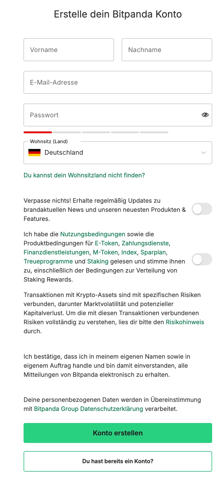 Die Kontoerstellung bei Bitpanda ist einfach, schnell und einsteigerfreundlich gestaltet. In nur wenigen Minuten kannst du dein Konto eröffnen und deine erste Einzahlung tätigen. Damit du genau weißt, was auf dich zukommt, zeigen wir dir den gesamten Registrierungsprozess im Detail.