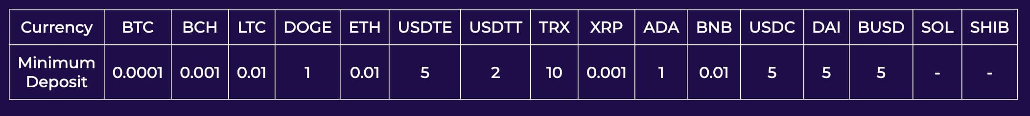 Das Crashino Casino ermöglicht die Ein- und Auszahlungen über 14 Kryptowährungen. Während meines Tests waren die folgenden Coins verfügbar: