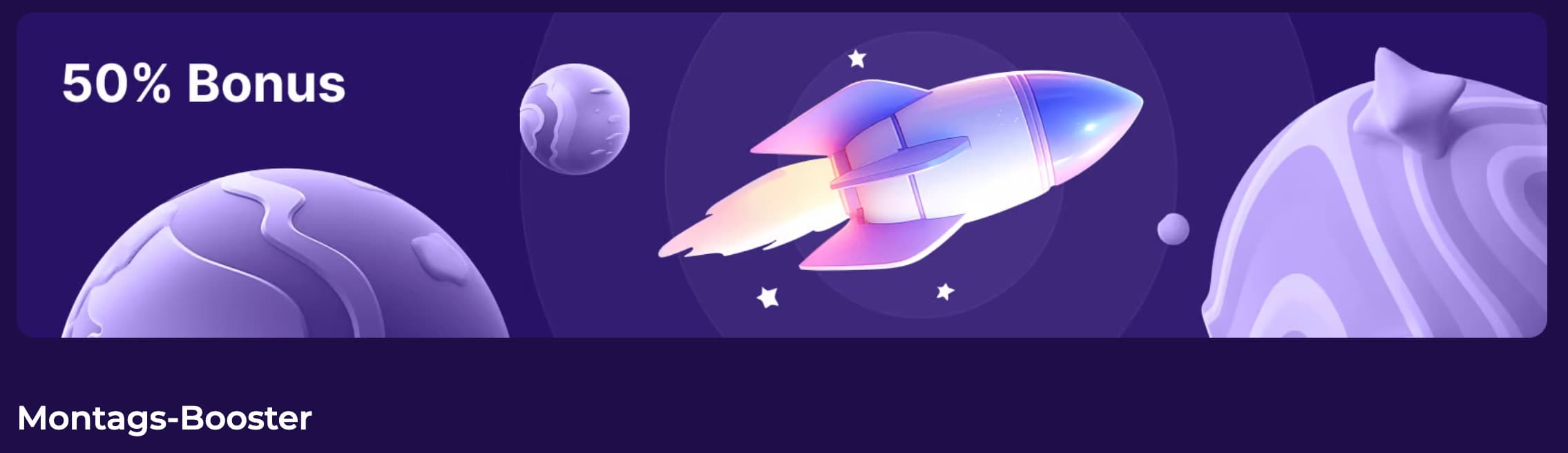 Der Montags-Booster hält einen 50 % Einzahlungsbonus bis 250 USDT bereit, den Du jede Woche von Montag 9 Uhr bis Mittwoch 8 Uhr ab einem Mindesteinzahlungsbetrag von 20 USDT in Anspruch nehmen kannst.