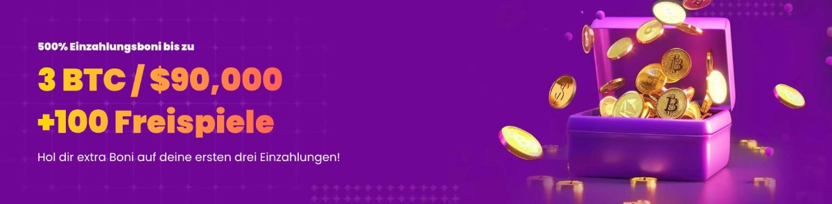 - 3. Einzahlungsbonus: 200 % bis zu 30.000 $ / 1 BTC + 50 Freispiele